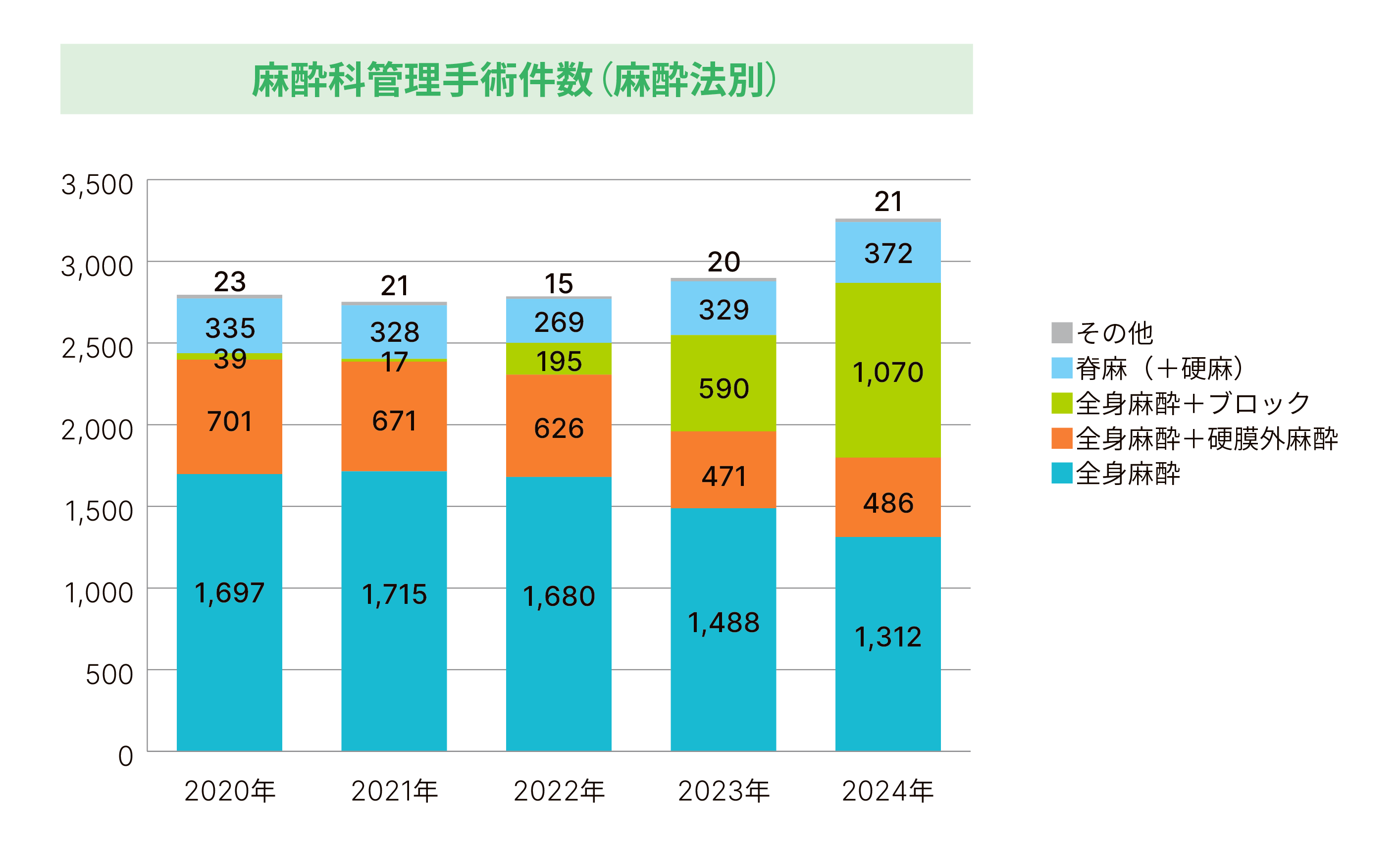 麻酔科管理手術件数(麻酔法別)