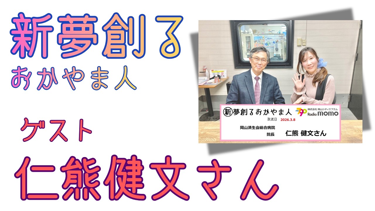 このたび、仁熊健文院長(岡山済生会総合病院)が岡山シティエフエムレディオモモ「新・夢創る人 おかやま人」に出演します。