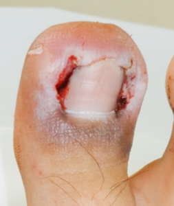 ①陥入爪です。食い込んでいる爪の端だけを抜きます。