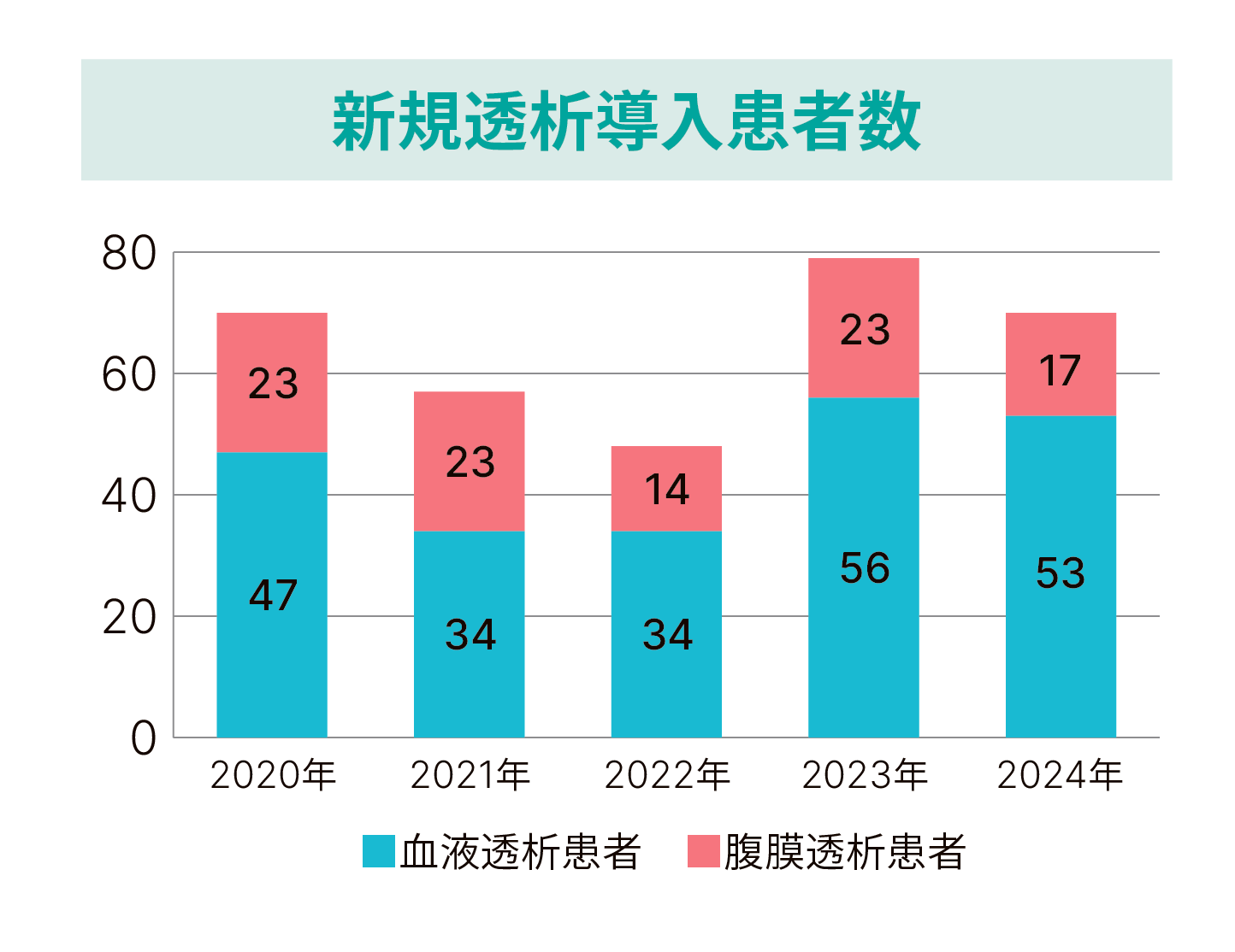 - 新規透析導入患者数:血液透析 53名・腹膜透析 17名